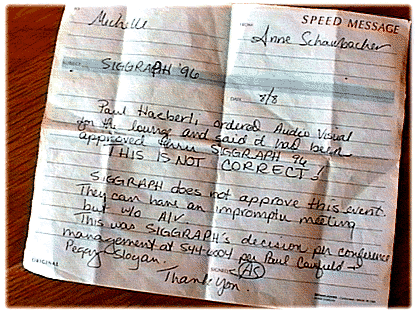 I'm not sure who Michelle, Anne, Paul or Peggy are, but it looks like there was some kind of confusion. I ordered the equipment and put the charge on my credit card. In the evening, the folks at the hotel gave me this note.